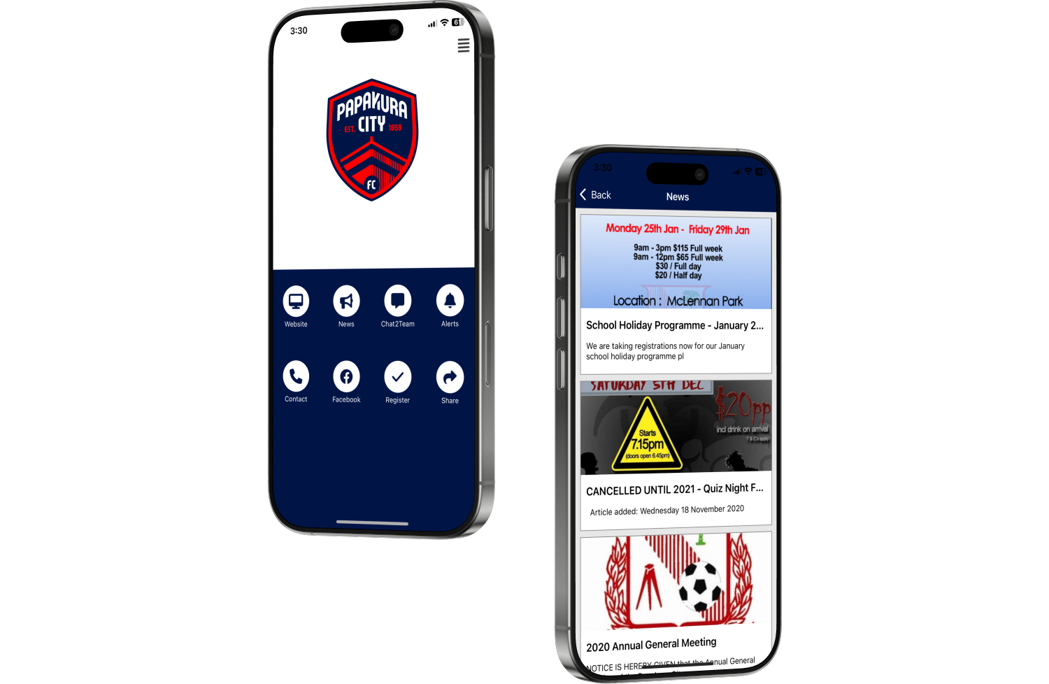 Go to the App Store or Google Play, search for Sporty NZ, download then search for Papakura City Football Club.