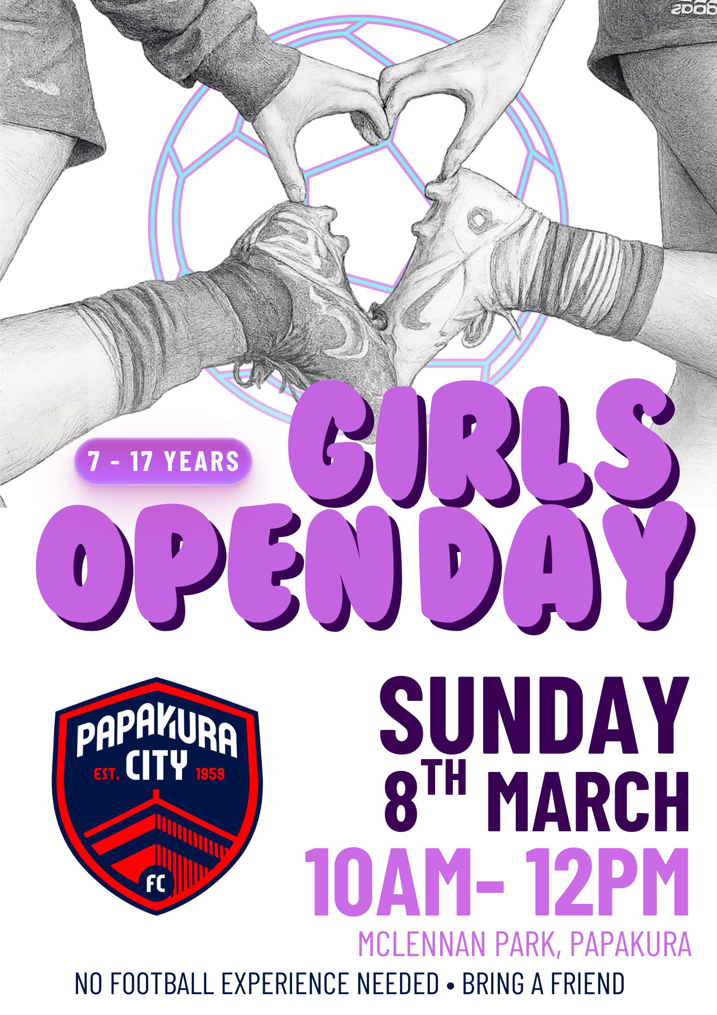 Come along to our Girls Open Day and bring a friend for a fun kick-around to experience how exciting football for girls is at Papakura City FC.