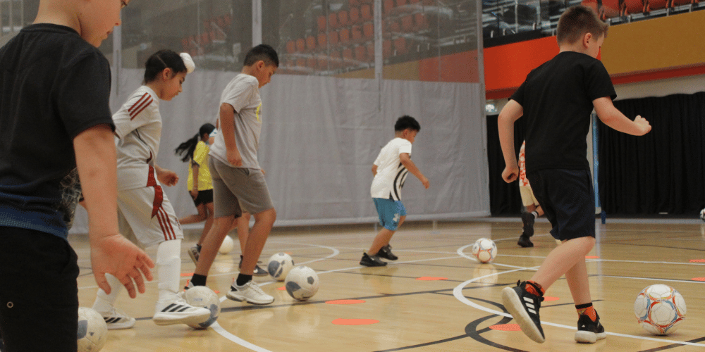 The Papakura City FC Futsal Skill Centre follows a structure of a movement game, a key skill game, and then ends with a Futsal match. All designed to have as many touches of the ball as possible.