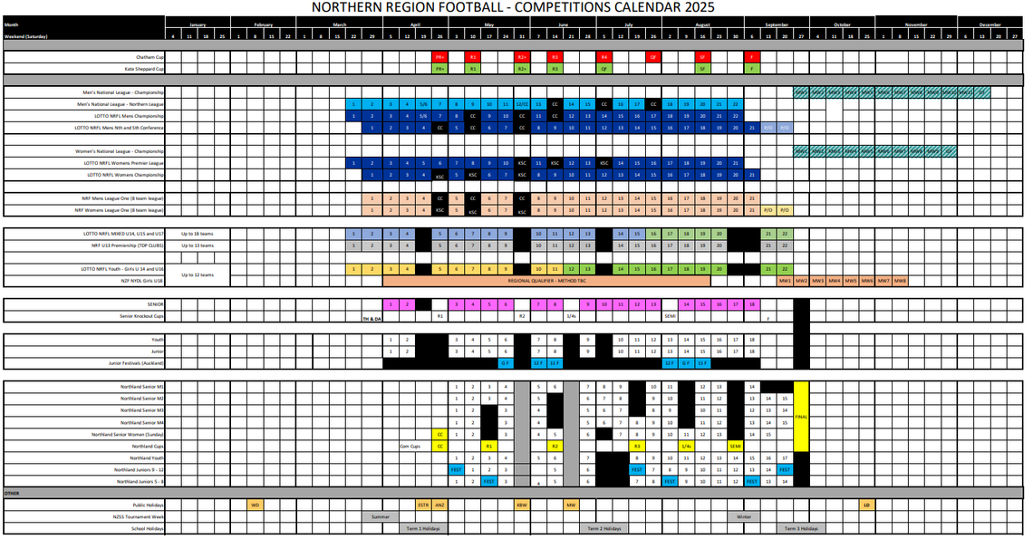 (no games Easter & ANZAC weekend, Kings Birthday Weekend, Matariki Weekend and 5th July subject to change by NRF)